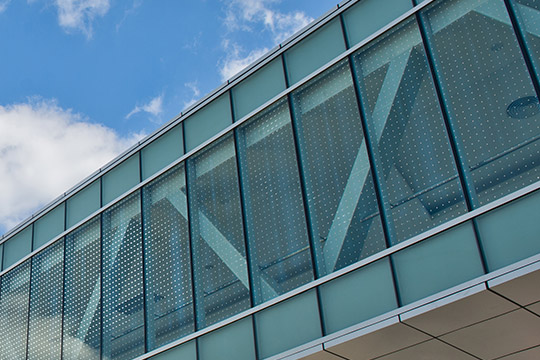 Another advantage of SEEN Elements is the very flexible and cost-effective production. Only one DXF and PDF file is required to produce a specific design. Customized solutions combined with the tested bird protection pattern within one or distributed over several glass surfaces are thus possible, even in combination with other metal coatings, colored variants or other element shapes and sizes.